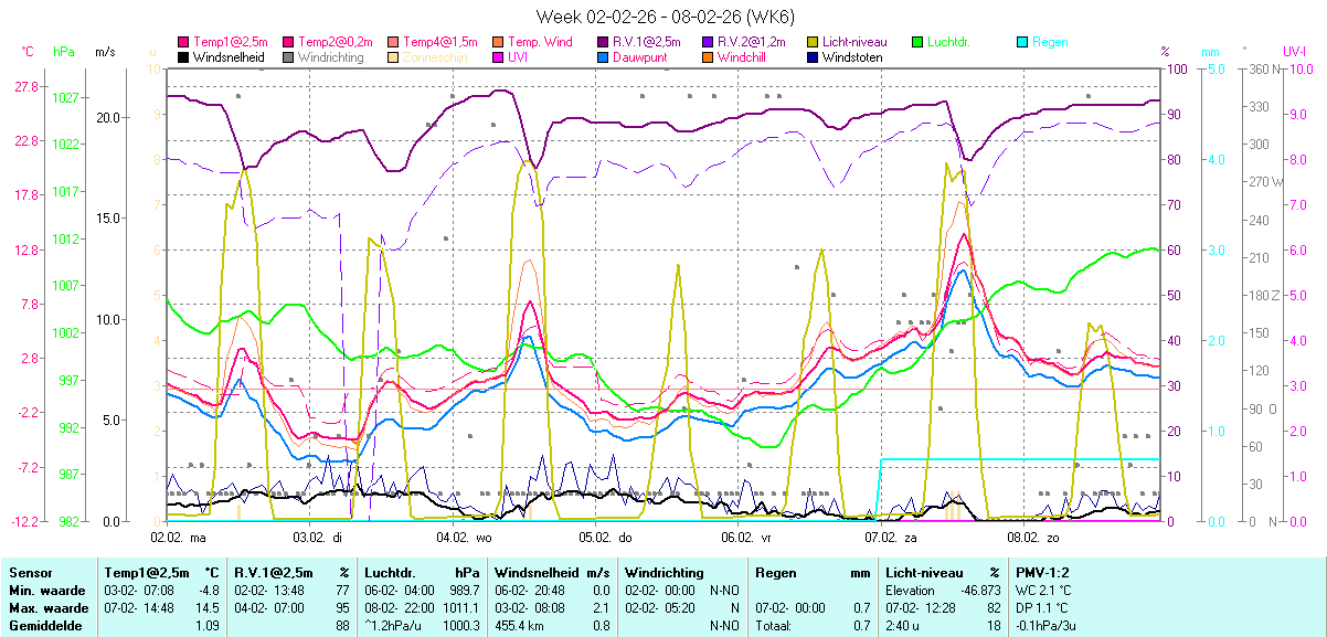 | De waarden representeren de gegevens van de laatste 24 uur! Barometer is corrected to sealevel! |
